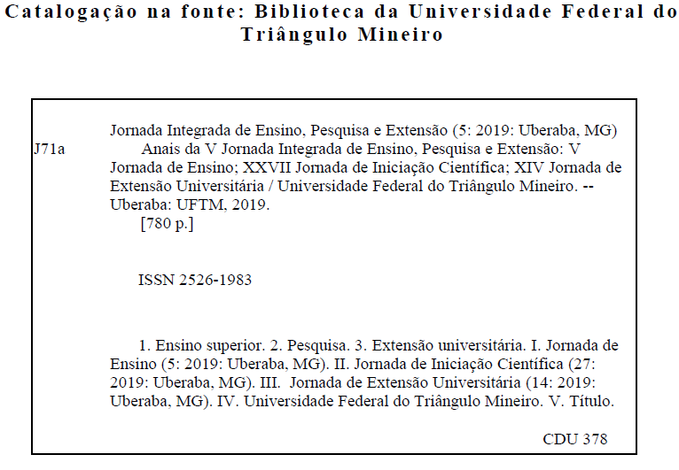 Realizada nos dias 21, 22 e 23 de Outubro de 2019 no Campus Sede da UFTM em Uberaba-MG e no dia 24 e 25 de Outubro de 2019 no Campus UniversitƔrio da UFTM em Iturama-MG.